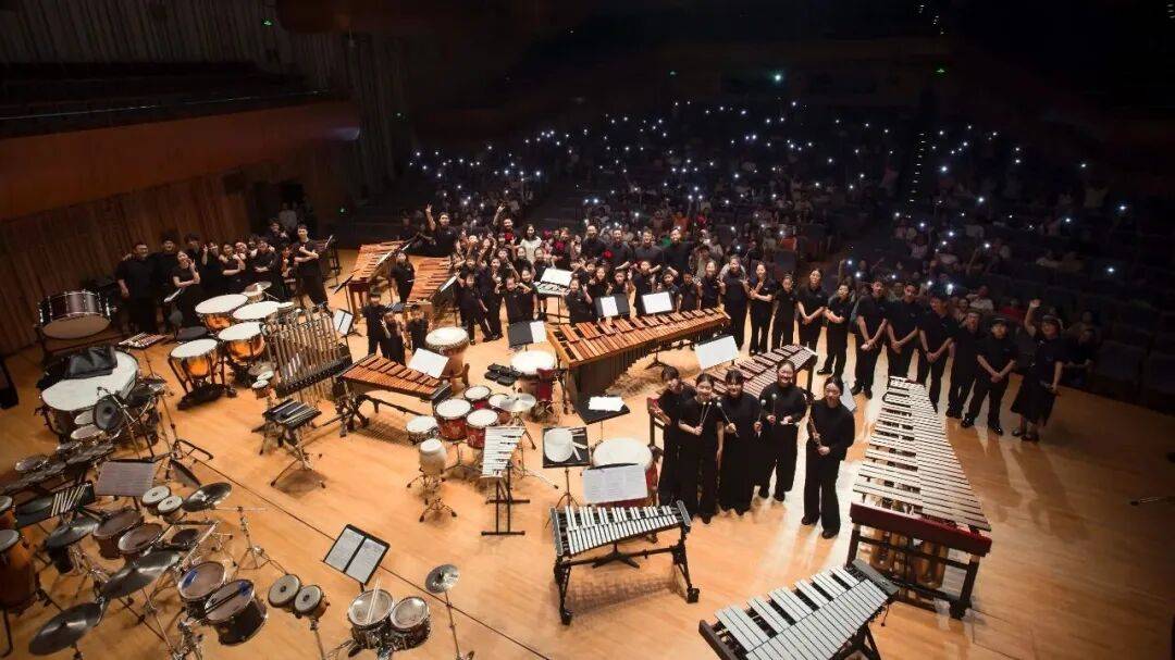 中西合璧的乐器摆设:全曲采用马林巴等西洋袭击乐集合排胀、京剧小锣等民族袭击乐,到场沙槌、音树、风波胀等效率类乐器,营制重溺式视听画面。
